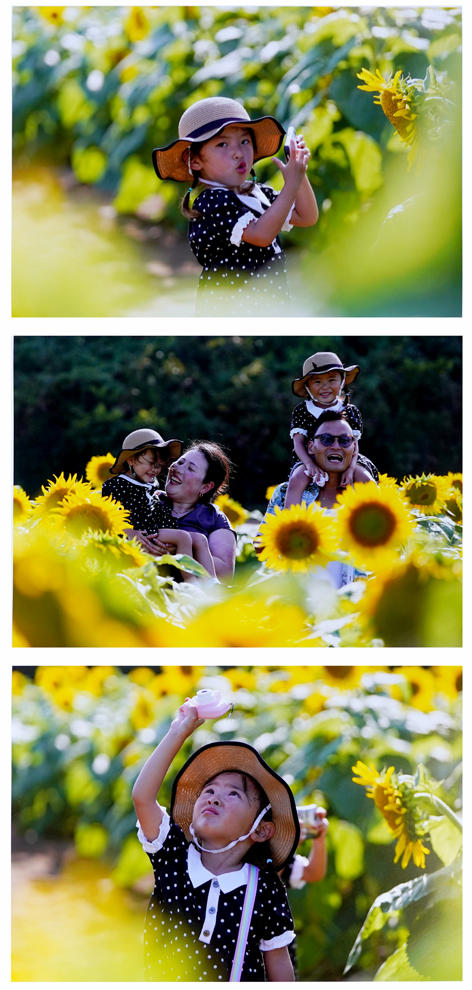 秋山さんのいつものファミリーを撮影した組み写真です。ひまわり畑と子供たち、パパママの情景を織り込んだ楽しい作品です。