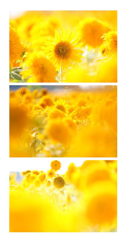 筑西明野のひまわりです。今年は八重のひまわりでした。おおくの花の中になにか囁いているような花を(思い込みですが..)見つけて撮りました。