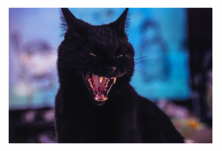 飼い猫の一瞬をとらえたものです。威嚇しているのか?な。猫はあくびをしたときなど